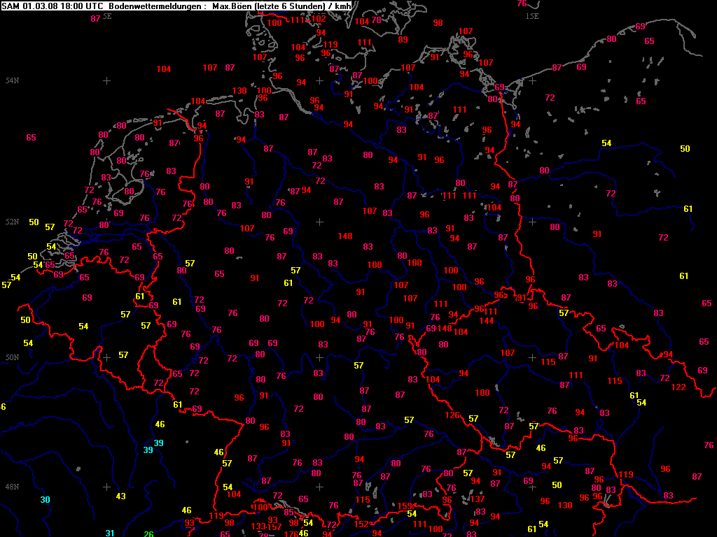 Höchste Windspitzen der letzten 06 Std.