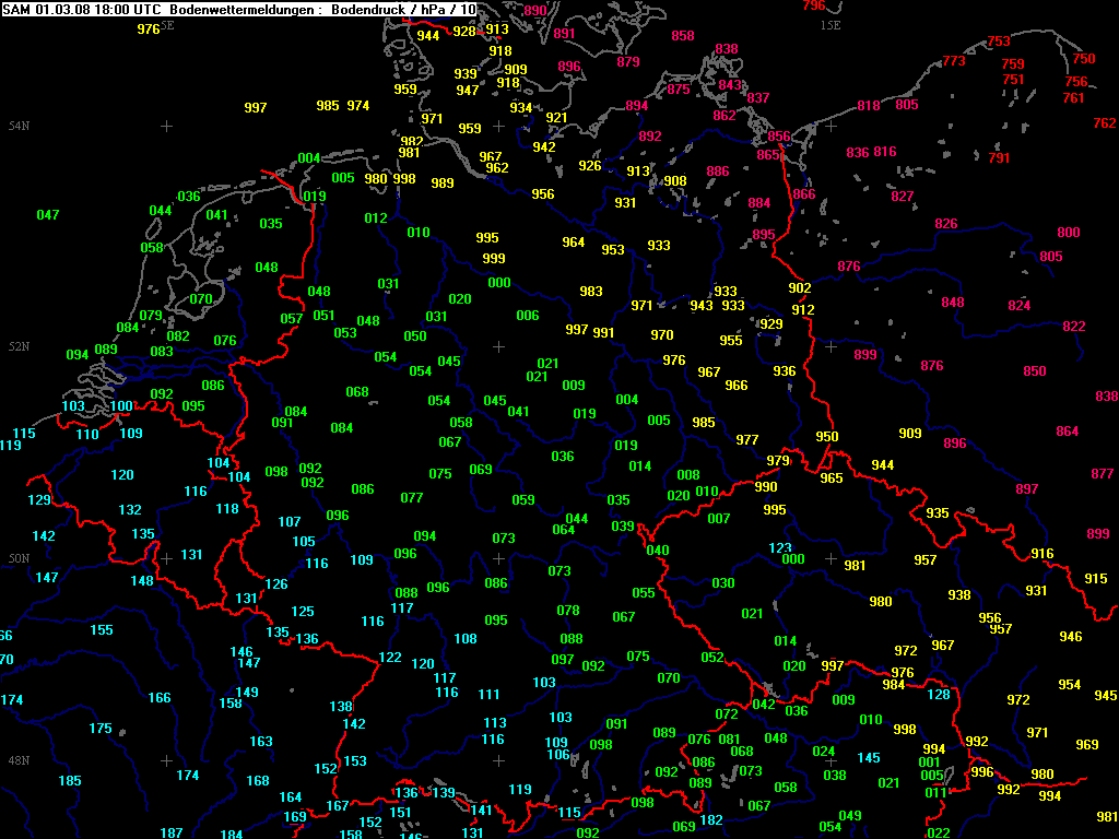 Luftdruck auf Meereshöhe reduziert
