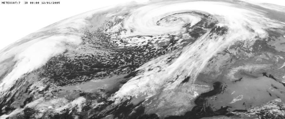 Gero sollte dieser Superorkan heißen. Ein fantasievoller Name, der aber in der Realität selbst den Orkan "Lothar" alt aussehen lässt! "Gero" hatte einen Kerndruck von 945hPa, was schon extrem niedrig ist. Im Vergleich: "Lothar" hatte "nur" 961hPa zu bieten. Einige Schiffe und Bojen meldeten Wellenhöhen von bis zu 12m. Kein Wunder! Die Station North Rona auf den Hebriden, meldete um 00z eine Windböe von sagenhaften 207km/h! Sehen Sie in den Analysen, was "Gero" für eine "Bombe" war!