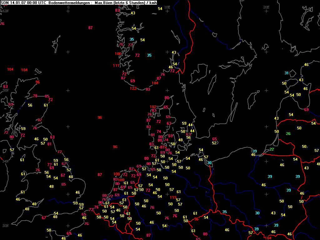 Höchste Windspitzen der letzten 06. Std.