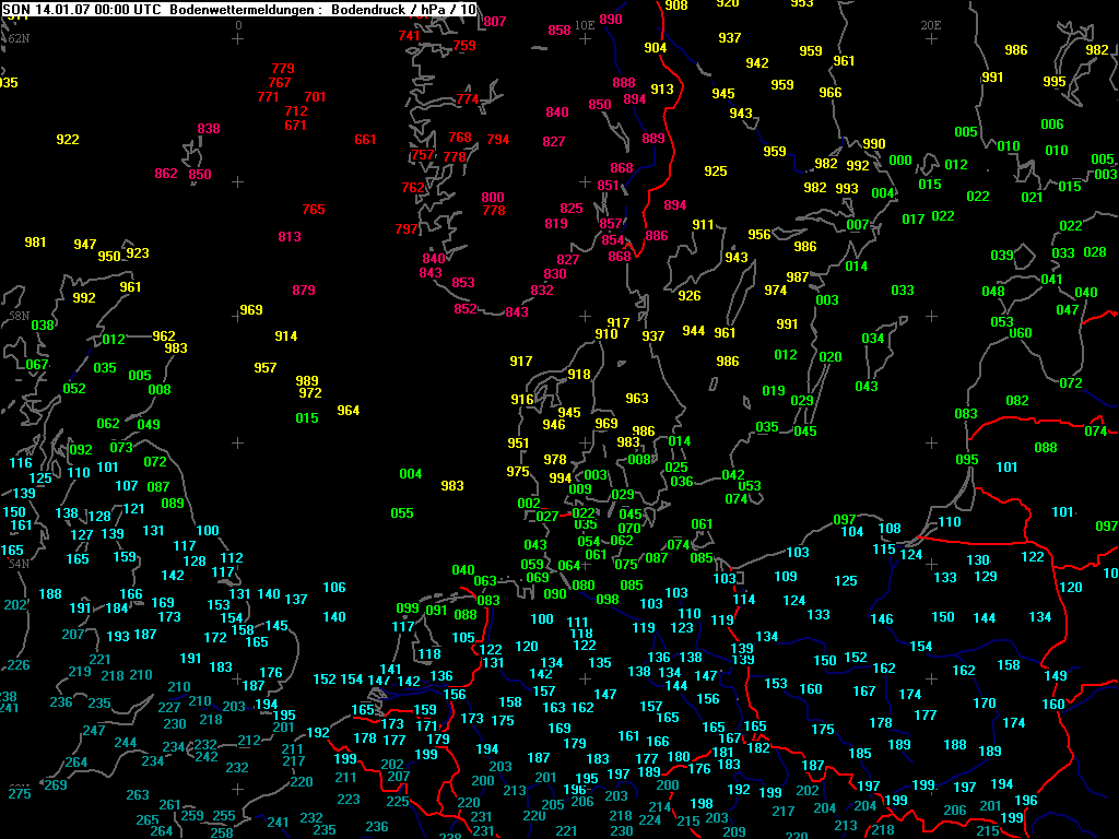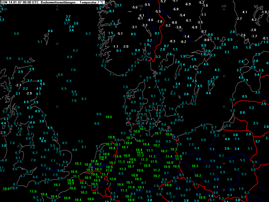 Bodenwettermeldungen von 00UTC