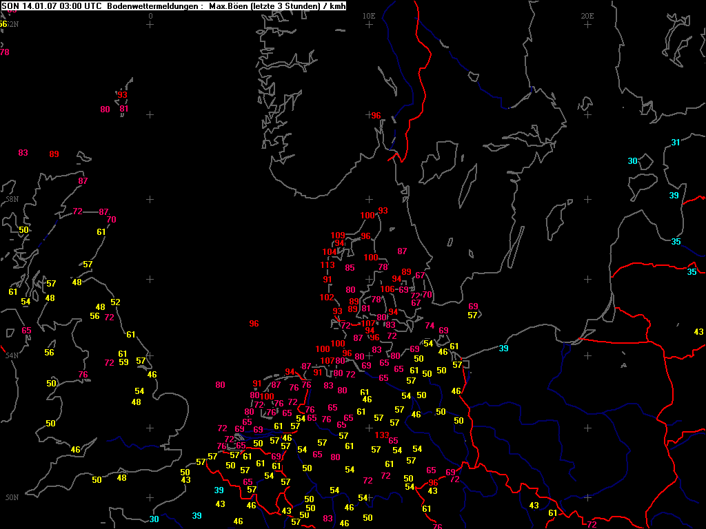 Höchste Windspitzen der letzten 03. Std.