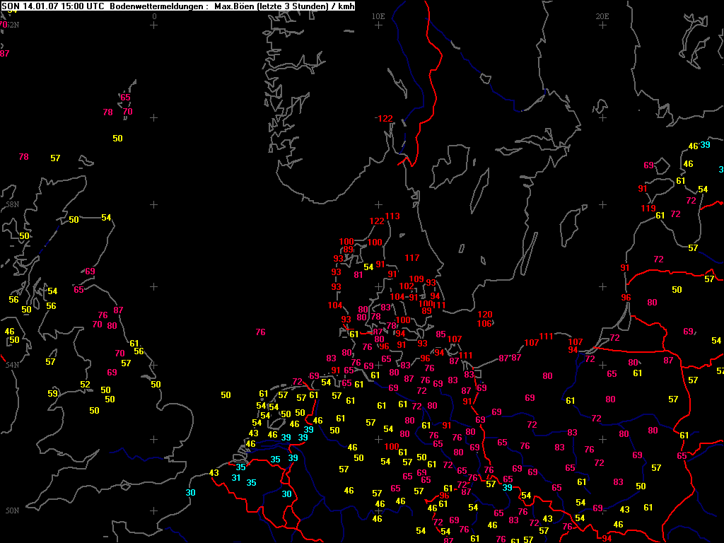 Höchste Windspitzen der letzten 03. Std.