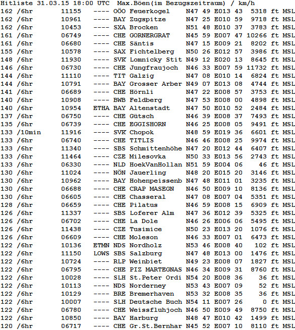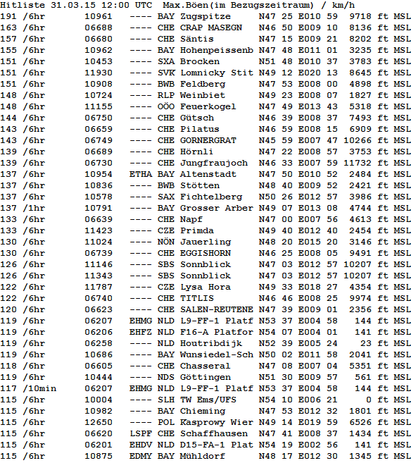 Höhe von 1460m über Grund (2220m ü. NN.) eine Windgeschwindigkeit von 172km/h