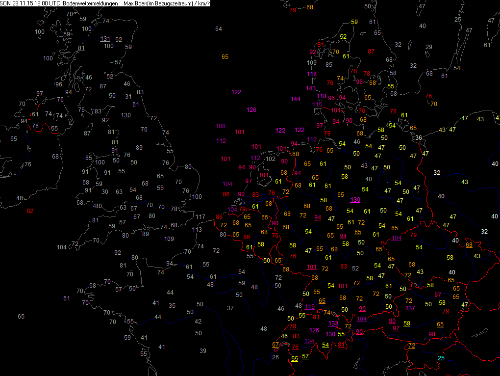 Höchste Windspitzen der letzten 06 Std.