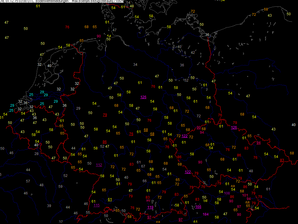 Höchste Windspitzen der letzten 03 Std.