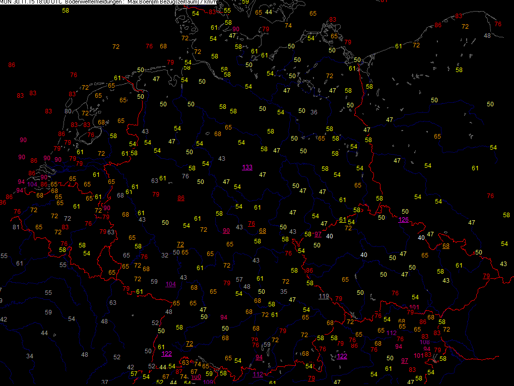 Höchste Windspitzen der letzten 06 Std.
