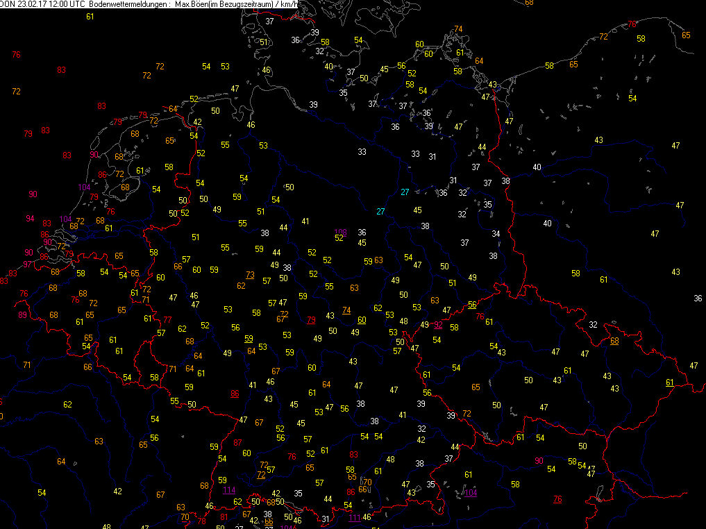 Höchste Windspitzen der letzten 06 Std.