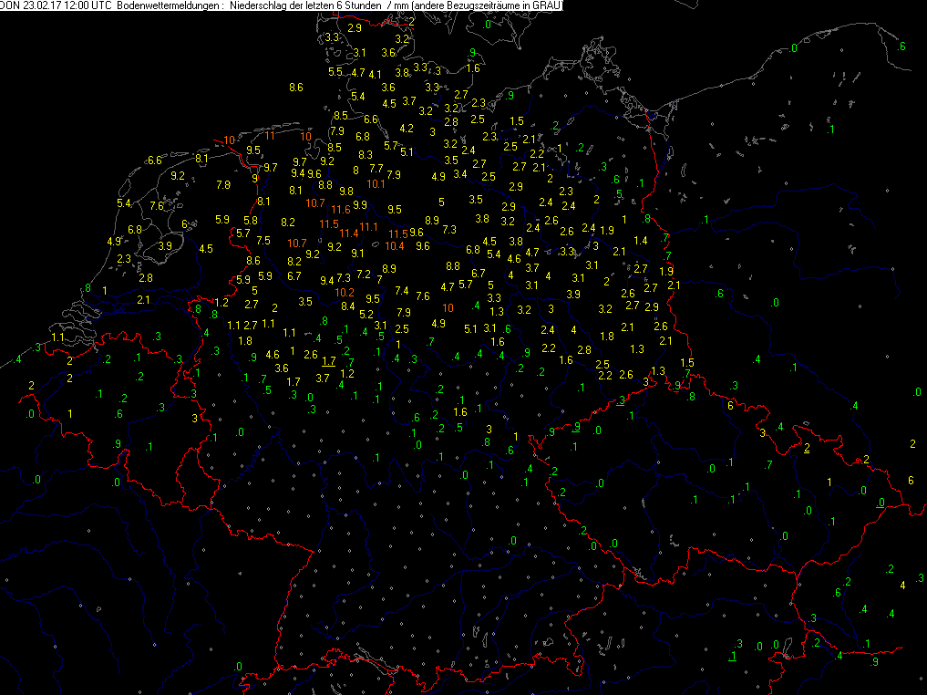 Niederschlag der letzten 06 Std.