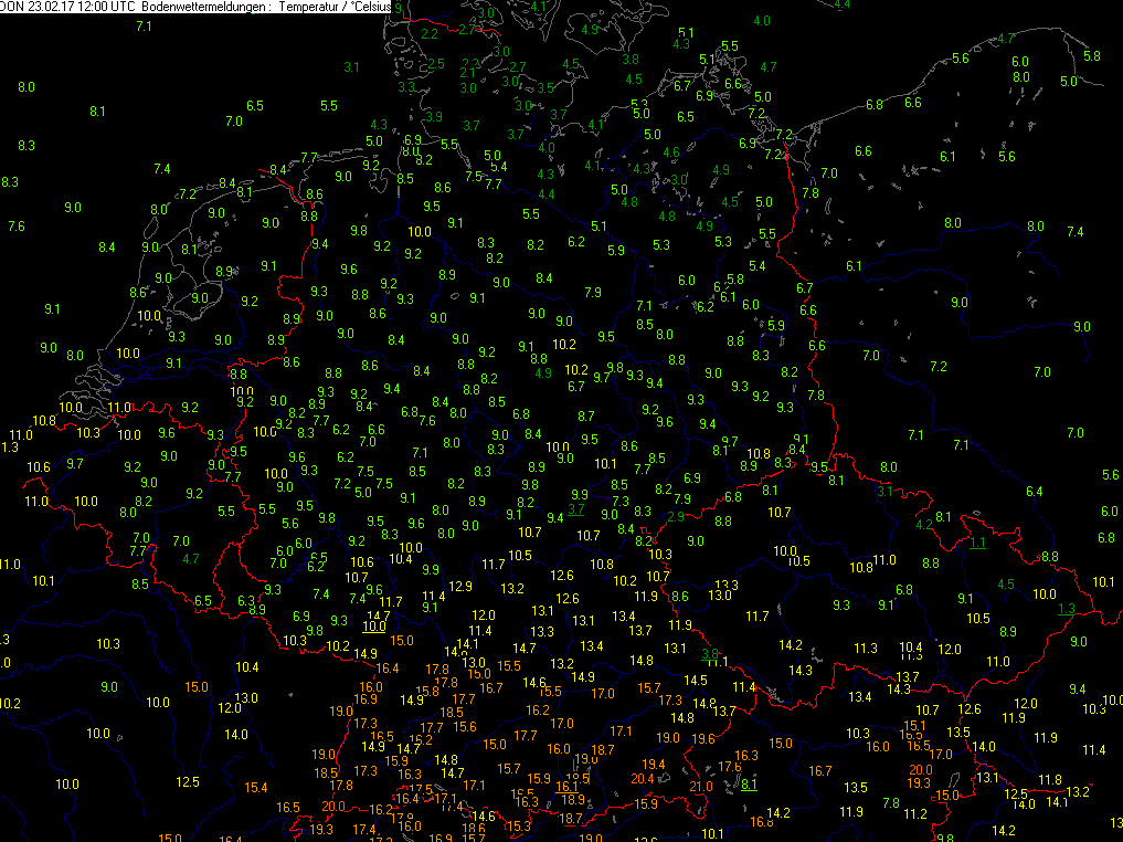 Bodenwettermeldungen von 12UTC
