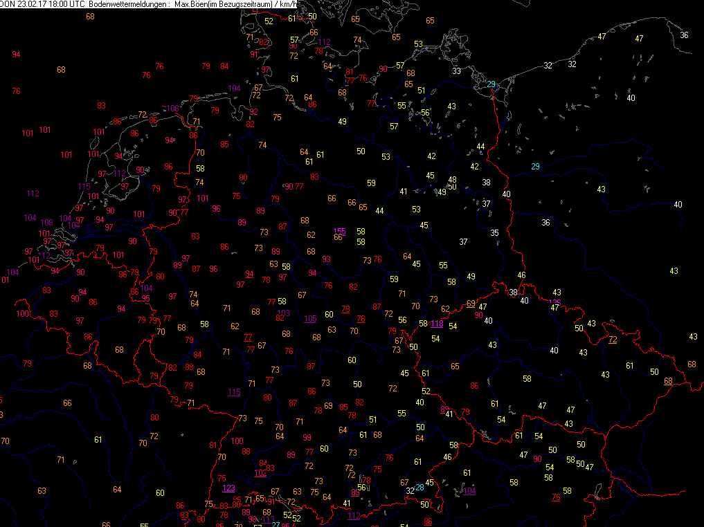 Höchste Windspitzen der letzten 06 Std.