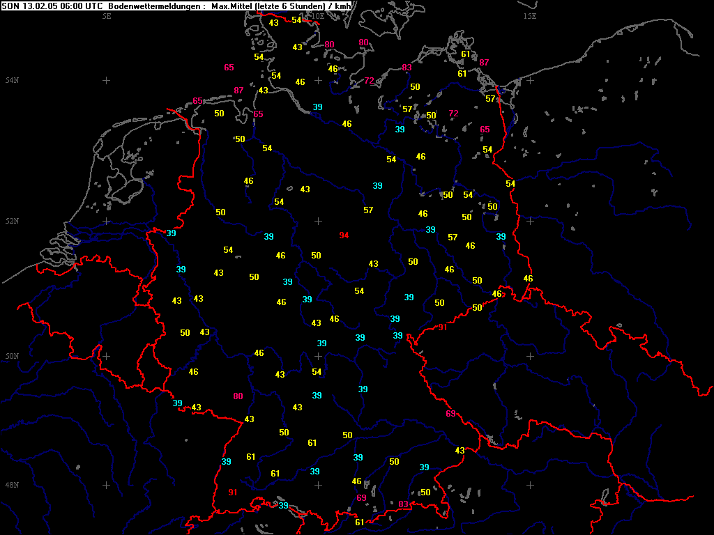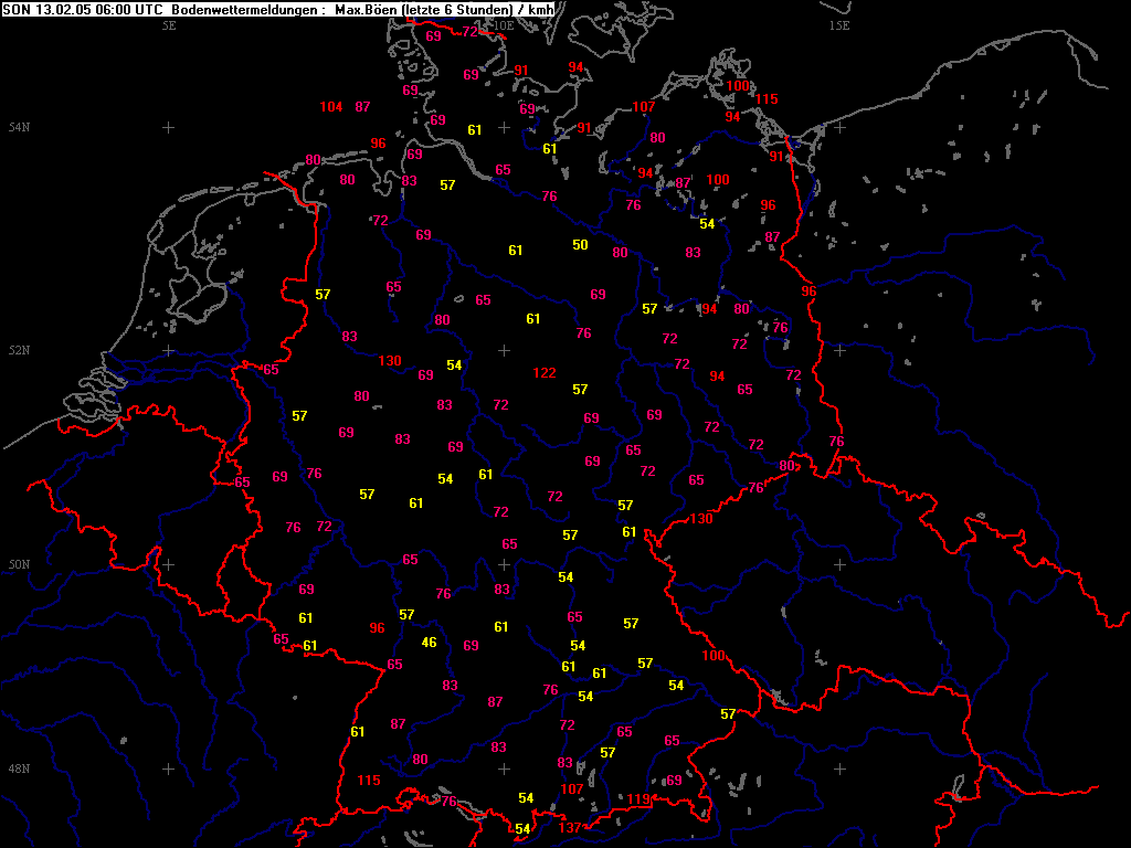 Höchste Windspitzen der letzten 06 Std.